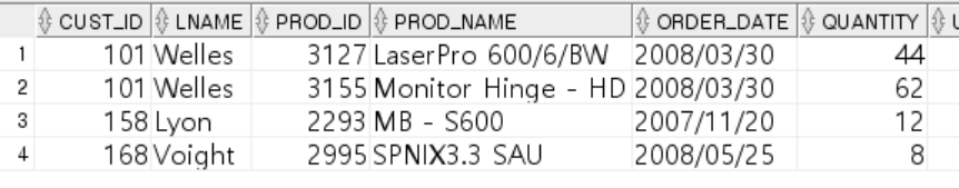 select c.cust_id, c.lname, p.prod_id, p.prod_name