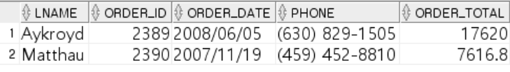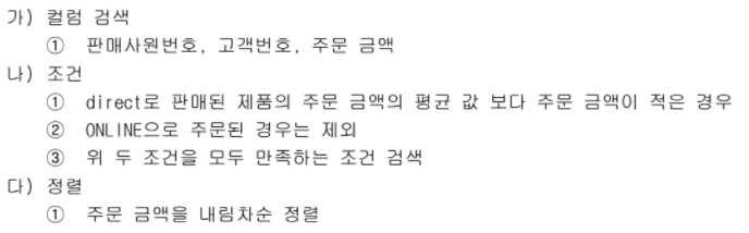 2. 고객 테이블(custs)와 주문 테이블(orders)을 이용하여 다음 조건의 결과를 검색하세요