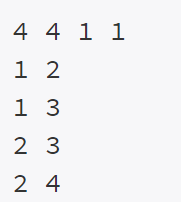 (2 ≤ N ≤ 300,000, 1 ≤ M ≤ 1,000,000, 1 ≤ K ≤ 300,000, 1 ≤ X ≤ N) λμ§Έ μ€λΆν° Mκ°μ μ€μ κ±Έμ³μ λ κ°μ μμ°μ A, Bκ° κ³΅λ°±μ κΈ°μ€μΌλ‘ ꡬλΆλμ΄ μ£Όμ΄μ§λ€.