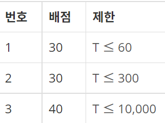 ์ฒซ ๋ฒ์งธ ์ค์๋ ์๋ฆฌ์๊ฐ T(์ด)๊ฐ ์ ์๋ก ์ฃผ์ด์ ธ ์์ผ๋ฉฐ ๊ทธ ๋ฒ์๋ 1 ≤ T ≤ 10,000 ์ด๋ค.